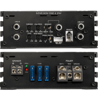 1-Kanal Subwoofer-Verstärker mit hoch effizienter Class D Schaltung, integrierter Aktivweiche und kompakten Abmessungen