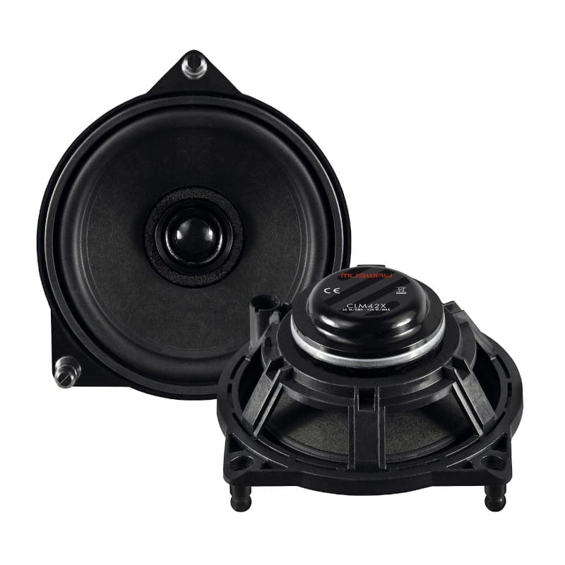 Budgetfreundlich und etwas unterhalb der preisgekrönten CSM-Modellen angesiedelt, sind die MUSWAY CLM-Lautsprecher eine interessante Alternative, um in Mercedes-Benz Fahrzeugen der C-, GLC- oder E-Klasse den Sound ab Werk nachträglich und einfach zu verbessern. Alle CLM 10 cm Modelle besitzen sehr kräftige Neodym-Antriebe, die im Zusammenspiel mit der kleinen bewegten Masse der federleichten Membranen einen sehr guten Wirkungsgrad und einen hohen Schalldruck erzielen. Die 25 mm Gewebe-Hochtöner warten sogar mit noch stärkeren N52 Neodym-Antrieben und CCAW Alu-Kupferdraht Schwingspulen auf, die für eine extrem gute Impulsfreudigkeit und hohe Detailtreue sorgen. Auch im Koax-Lautsprecher CLM42X arbeitet ein feiner Gewebehochtöner, der mit seinen 16 mm sehr tief im Lautsprecher eingebaut werden konnte. So aufgebaut kommt er einer Punktschallquelle nahe, was eine wesentliche Klangverbesserung zur Folge hat.