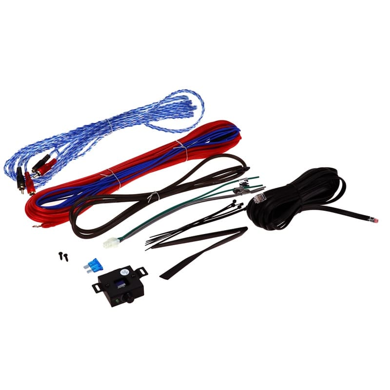 Alles, was Sie für die Installation benötigen, ist im Lieferumfang enthalten. Das mitgelieferte Verkabelungskit umfasst ein 5 m langes Stromkabel, ein 1,2 m langes Erdungskabel, ein 5 m langes Cinch-Kabel und ein 5 m langes Fernbedienungskabel. Für zusätzlichen Komfort sind die Strom- und Erdungskabel mit Kabelschuhen und einer Sicherung vorinstalliert, was die Installation schnell und einfach macht.