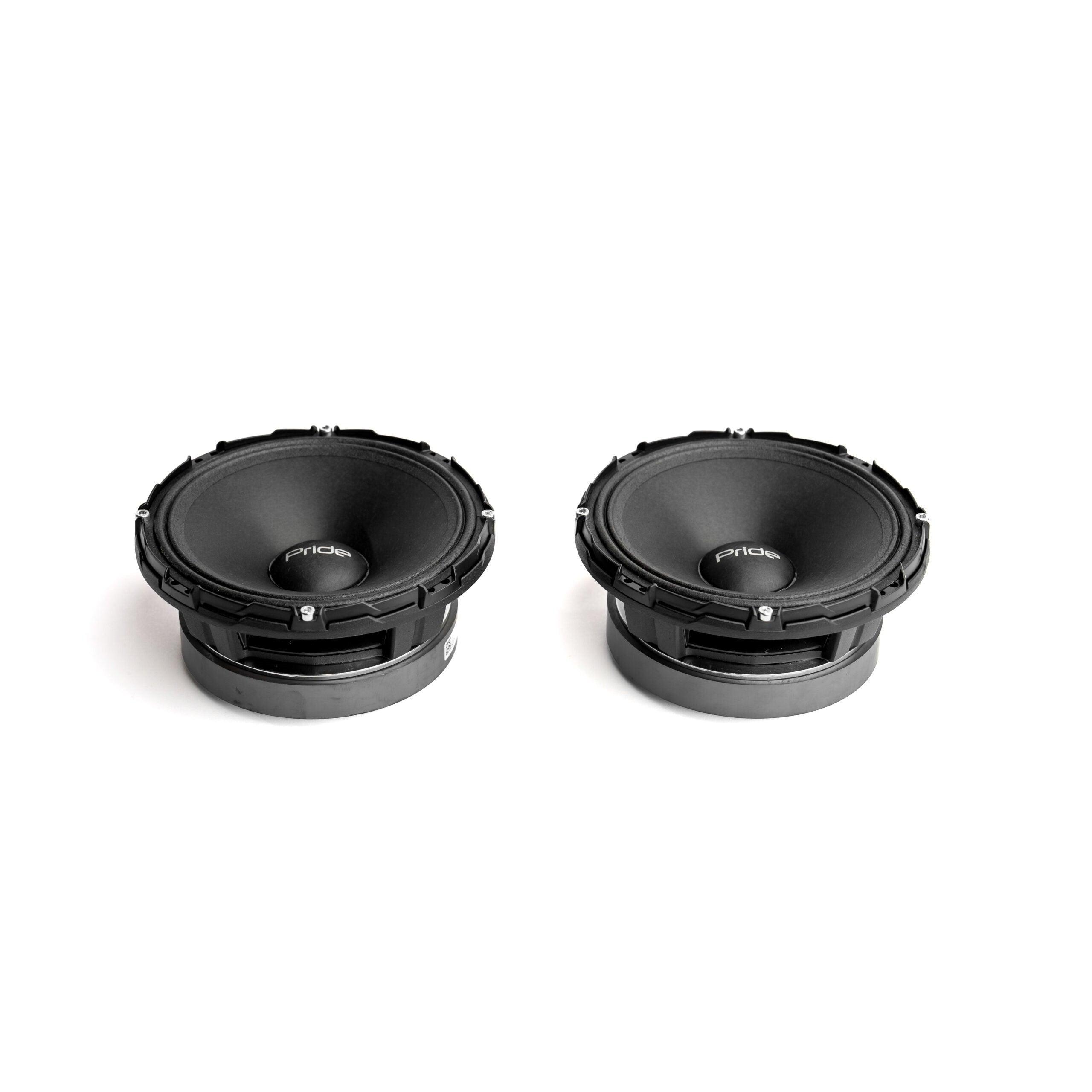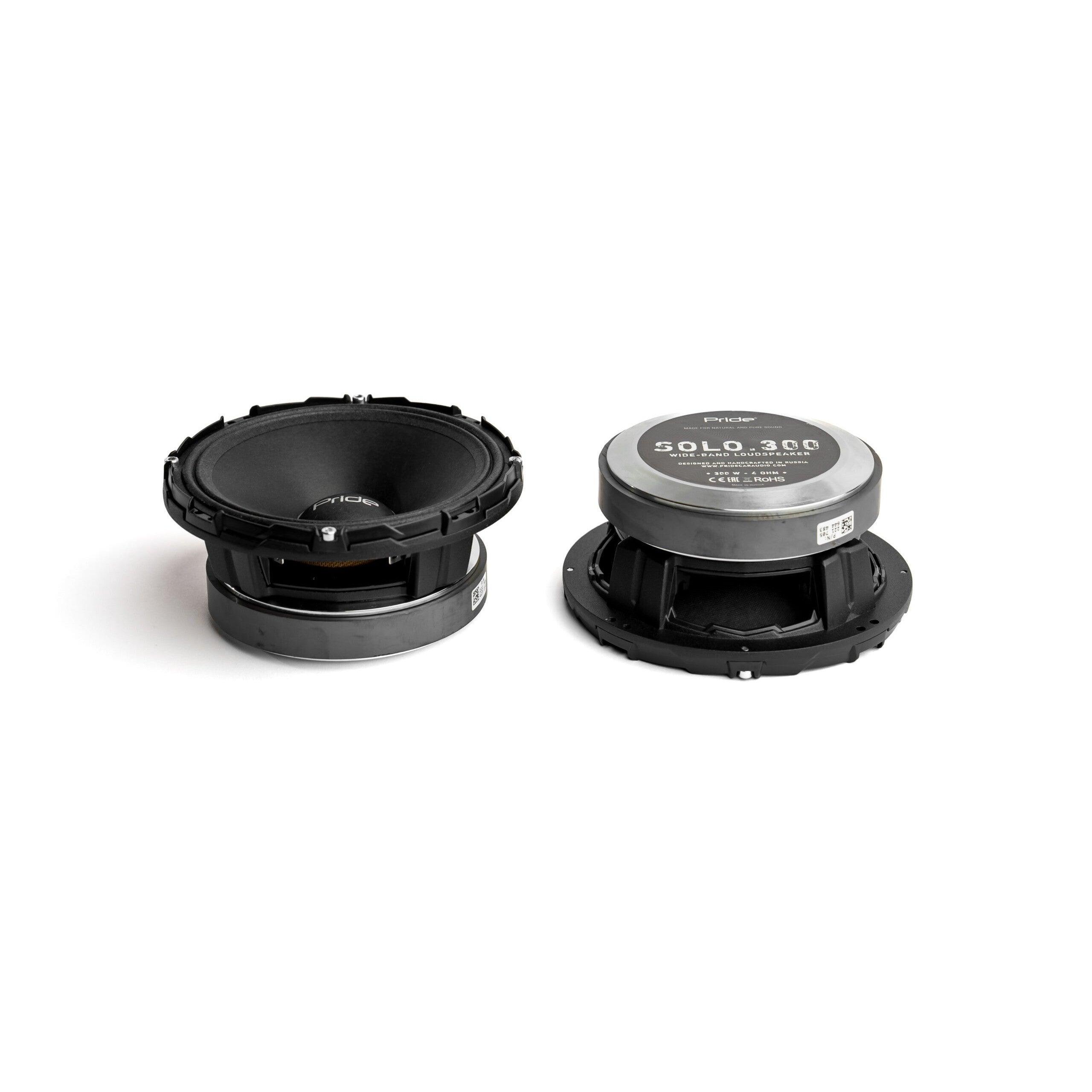 Die Pride Solo 300 Competition Lautsprecher haben durch ihre effektive Membranfläche und dennoch geringen bewegten Masse, einen sehr hohen Wirkungsgrad und sind dabei im oberen Frequenzbereich ab 160Hz sehr präsent und ermöglichen eine saubere und klare Wiedergabe im Midbass-Bereich, bei enorm hohen Pegel.
