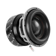 Auf diesem ultimativen Niveau sind Linearität und Präzision entscheidend. Eine bewegliche Einheit mit einer riesigen Membran und einer hochwertigen, in den USA hergestellten Schwingspule (80 mm Wickelhöhe), die selbst bei extremen Auslenkungen perfekt ausgerichtet bleiben muss. Um diese enorme bewegte Masse unter Kontrolle zu halten, haben wir ein 4-lagiges Nomex-Spider-Paket mit orangefarbenem Mesh sowie eine Mega-Roll-Schaumsicke am oberen Rand implementiert – natürlich doppelt mit der Membran vernäht.