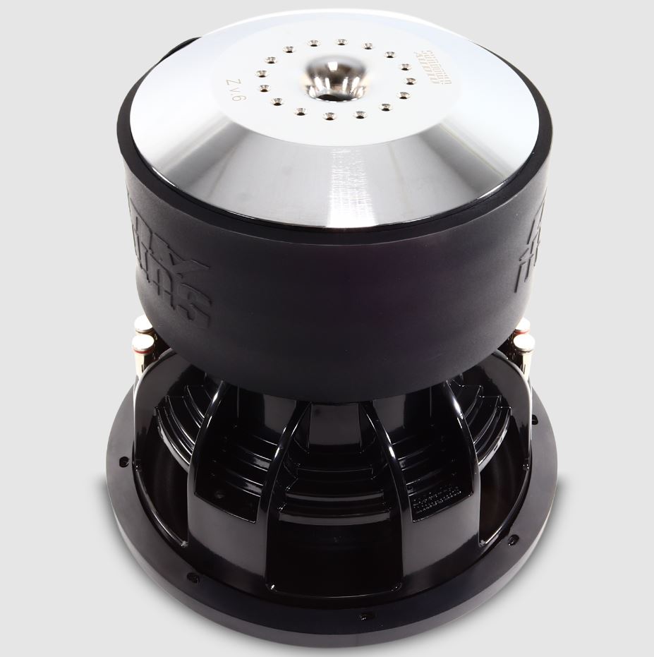 Der ZV6 ist die zweite Stufe in unserer „ULTRA HIGH EXCURSION“ Line, direkt nach der der X-Serie und ersetzt die weltberühmte ZV5-Serie. Die gesamte ZV-Reihe verwendet unsere Patentieren Körbe, welche durch einen Adapter auf dem Motor angebracht sind, mit je einem Durchmesser von 23,4cm. Somit ergibt sich eine Erhöhung von 102mm mit einer, in diesem Fall, stark erweiterten Polplatte, was eine Auslenkung von über 10cm Peak to Peak mechanisch ermöglicht. Im Vergleich zum X v3 Antrieb ist die hintere Polplatte dicker, um mehr Magnetstärke umwandeln zu können. Der Motor treibt eine 4-lagige Aluminium-Flachdrahtspule mit einem Durchmesser von 3" an, welche auf einem dicken Träger gewickelt ist, diese Kombination bietet ein unvergleichbares Hub-Niveau.