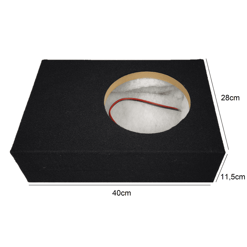 Qualitativ hochwertiges Auto-Connect Subwoofer-Leergehäuse für eine saubere Bass-Wiedergabe. In diesem Gehäuse können überwiegend Flach-Subwoofer platziert werden und sind universal einsetzbar. Das massive MDF-Gehäuse sorgt für Stabilität, Anschlussterminals für schnelles an- und abklemmen. Um einen sauberen und runden Sound sicherzustellen, wurde das Gehäuseinnere mit Watte ausgefüllt, für eine wärmere und dröhnfreie Wiedergabe.