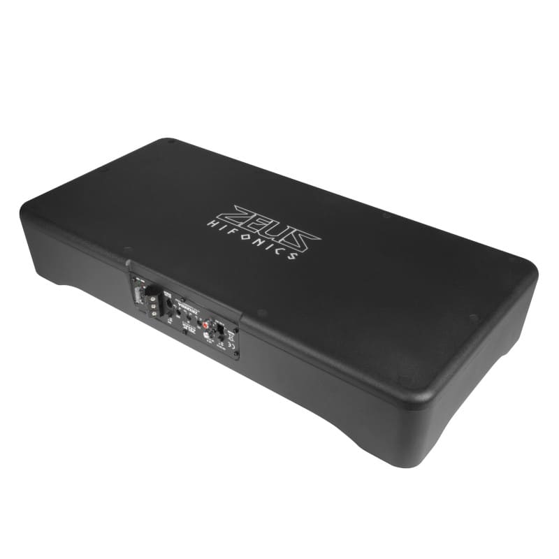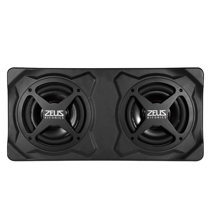 Mit dem ZEUS ZRX220A bietet HiFonics ein aktives Subwoofer-System, welches in puncto Bassperformance keine Wünsche offen lässt. Das Gehäuse ist komplett aus Aluminium gefertigt und wiegt insgesamt satte 11 kg. Ausgestattet ist das Aktiv-System mit zwei sehr leistungsfähigen, flach konstruierten Tieftönern, die mit jeweils 36 mm großen Schwingspulen und Aluminium-Membranen bestens bestückt sind. Die beiden 20 cm Woofer werden durch stabile Gitter optimal geschützt. Die eingebaute Class A/B Endstufe verfügt auch über die doppelte Leistung als herkömmliche Single-Systeme. Stolze 300 W/RMS treiben beide Subwoofer mühelos an. Das ZRX220A ist perfekt als doppelter Kofferraumboden oder unter einer Sitzbank einzusetzen. Deshalb kann das stabile Gehäuse auch umgedreht als sogenannte "Downfirebox" und somit als Teil der Ladefläche genutzt werden.