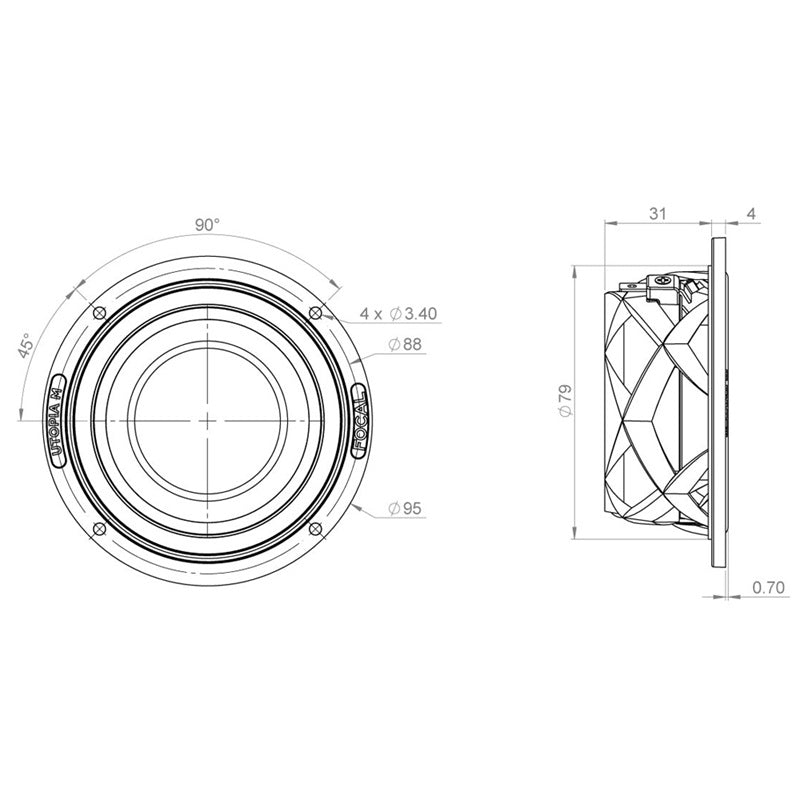 Das Design dieses sehr kompakten Mitteltöners wurde durch die exklusive Verwendung der neuen "W"-Sandwichmembran mit "M"-Profil ermöglicht, die unter anderem mit der TMD®-Aufhängung und dem roten Neodym-Motor, dem Markenzeichen von Focal, gekoppelt ist. Da unser Ohr im Bereich von 4 kHz besonders empfindlich ist, überrascht dieser 3,5 (8,7 cm) Mitteltöner mit seiner extremen Weichheit und seinem beeindruckenden Realismus.