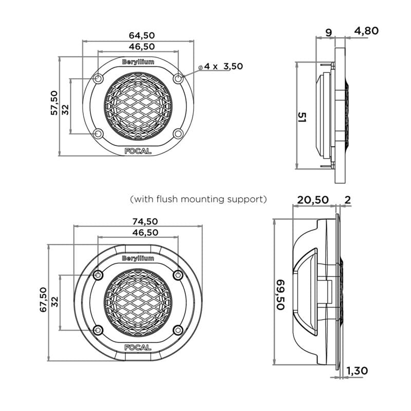 BERYLLIUM-HOCHTÖNER MIT "M"-PROFIL UND UMGEKEHRTER KALOTTE