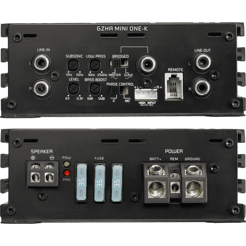 1-Kanal Subwoofer-Verstärker mit hoch effizienter Class D Schaltung, integrierter Aktivweiche und kompakten Abmessungen