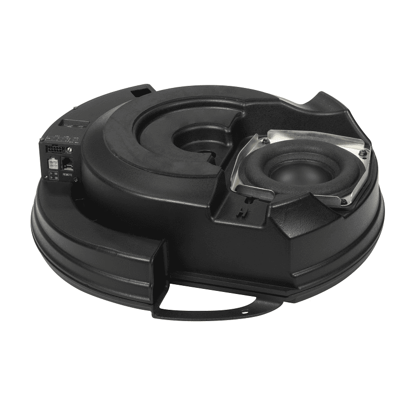 Mit gerade einmal 2,8 kg Gesamtgewicht ist das SIGNUM SL300A Aktiv-System die Speziallösung für die Beschallung von Kleinfahrzeugen in der Reserverad-Mulde (ab 15-Zoll). Das geringe Gewicht wird durch den Einsatz von bruchfestem ABS-Kunststoff ermöglicht, welcher über hervorragende Schalldämpfungseigenschaften verfügt. Im Gehäuse kommt ein speziell entwickelter 13 cm Subwoofer mit starkem Magnet und einer hoch belastbaren, sehr lang gewickelten 38 mm großen Schwingspule zum Einsatz. Dank der  sehr hohe lineare Auslenkung und dem ausgeklügelten Bass-Reflexkanal erzeugt dieses Kompakt-System Bass wie ein “GROSSES“! Nebst dem integrierten Verstärker für den Bass besteht die Möglichkeit, zwei weitere Vollbereich-Lautsprecher an die freien Stereo Verstärker-Ausgänge anzuschließen, um z.B. bereits vorhandene Werkslautsprecher mit mehr Leistung zu versorgen.