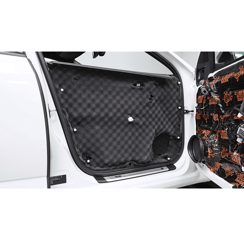 Sehr weich und mit „memory-Effekt“. Wird als 2. Schicht auf Vibrationsdämpfer verwendet. Mit stark klebenden Acrylatkleber ausgerüstet.