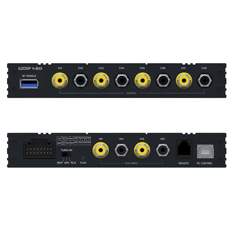 Der GZDSP 4-8XII ist ein digitaler Signalprozessor, welcher die Klangqualität einer Musikanlage im Auto unter bestimmten Voraussetzungen deutlich verbessern kann. Die Basis hierfür bilden zwei 28-Bit DSP-Chips in Verbindung mit vier 24-Bit Analog zu-Digital und acht Digital-zu-Analog Wandlern. Durch die freie Kombinationsmöglichkeit von bis zu 4 Eingangskanälen und einem 10-Band Equalizer für jeden Ausgangskanal kann der GZDSP 4-8XII in nahezu jedes Werkssystem integriert werden.