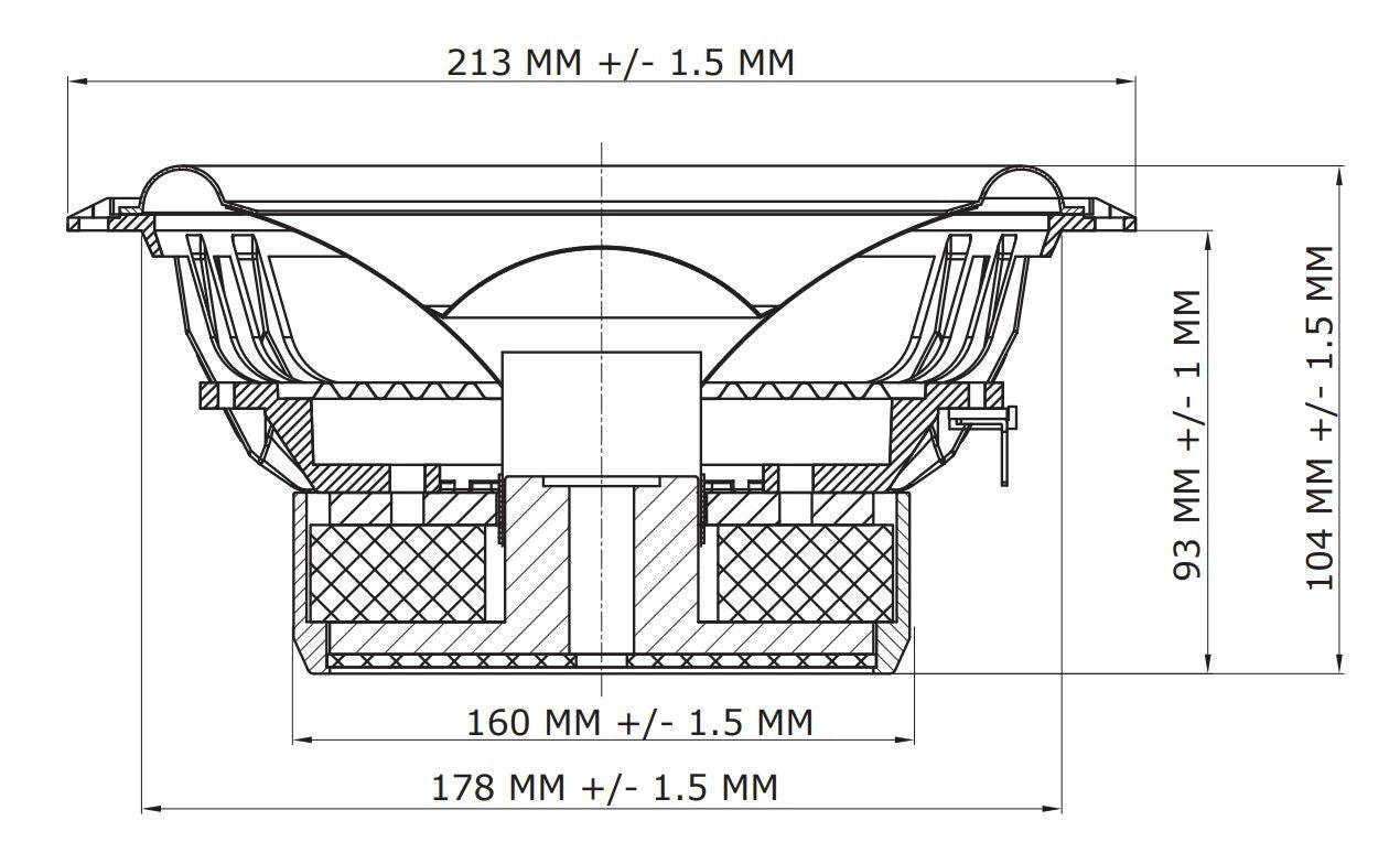 The REF8W 8-inch woofer uses a paper cone enriched with carbon fibers, this combination improves the audio reproduction enormously. The combination of paper and carbon sounds more natural and direct and gives the lower frequency ranges (<250 Hz) more warmth and precession. The cone also increases rigidity without adding unnecessary weight. Another advantage is that the mechanical limits of the loudspeaker are kept linear.
