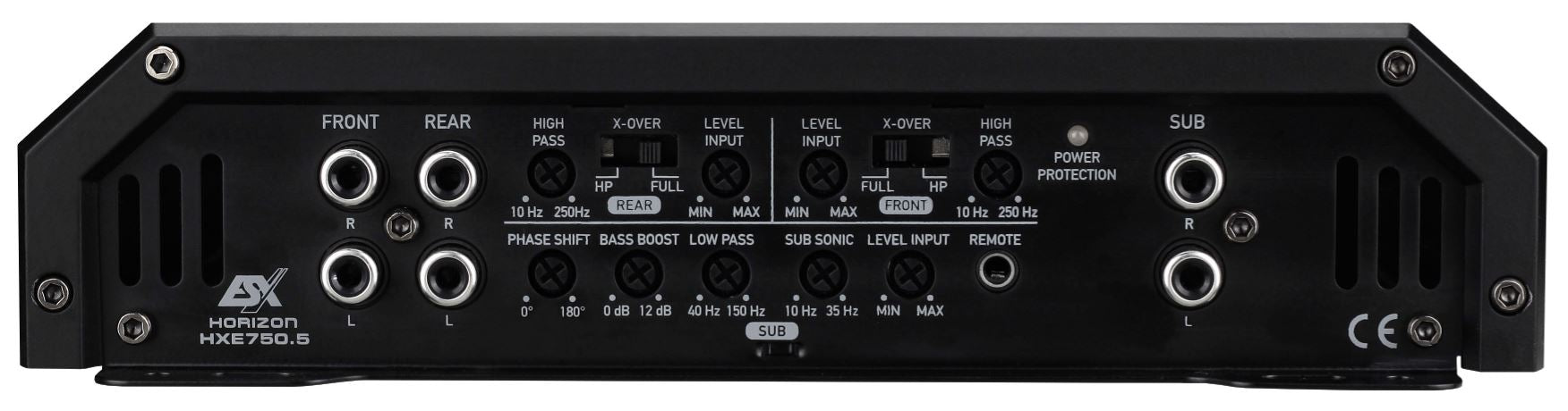 The HORIZON HXE amplifiers are the entry-level class from ESX and are convincing in every respect. They offer sophisticated technology, solid components and excellent workmanship, combined with impressive output power and versatile features. The elegant design with the heavy heat sink made of continuous cast aluminum conveys a noble and high-quality elegance that is rather unusual in this price range. The HORIZON amps offer a lot of amplifier power for a small budget.