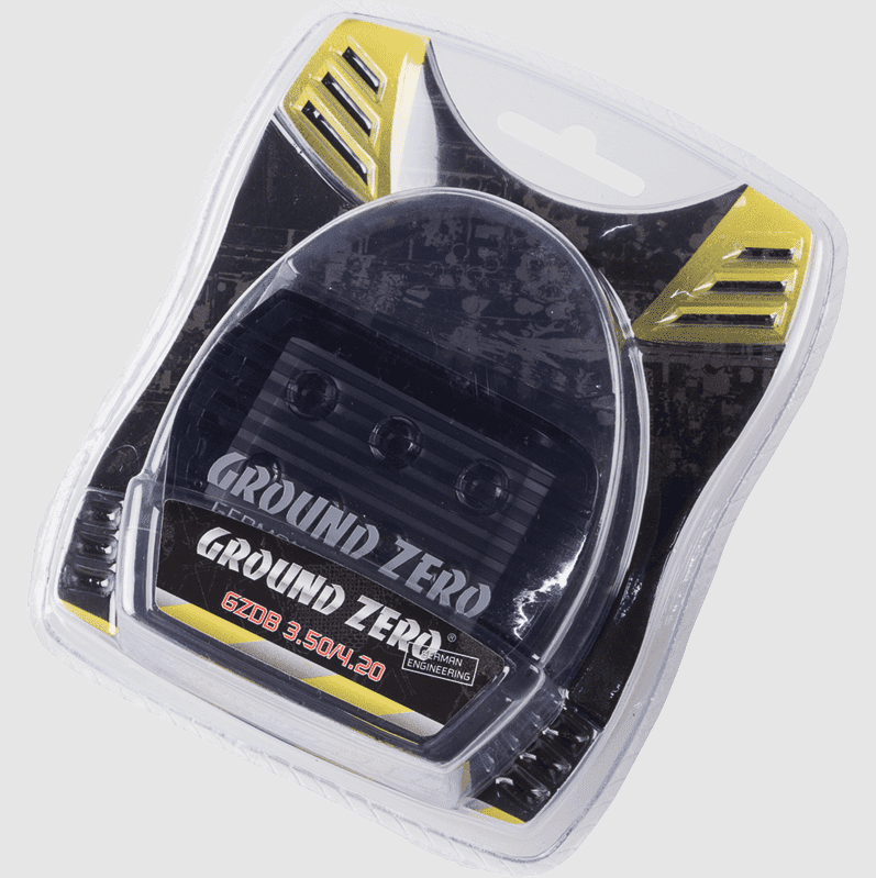 High-quality Ground Zero ground distribution block, for easy distribution of the ground connections, low contact resistance and high quality.