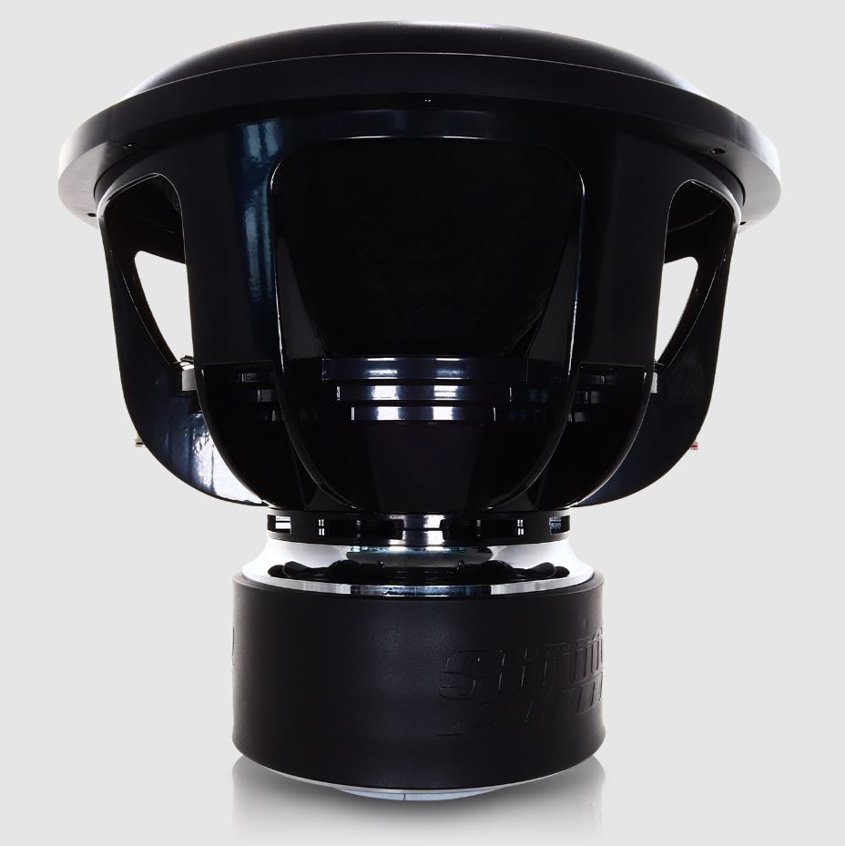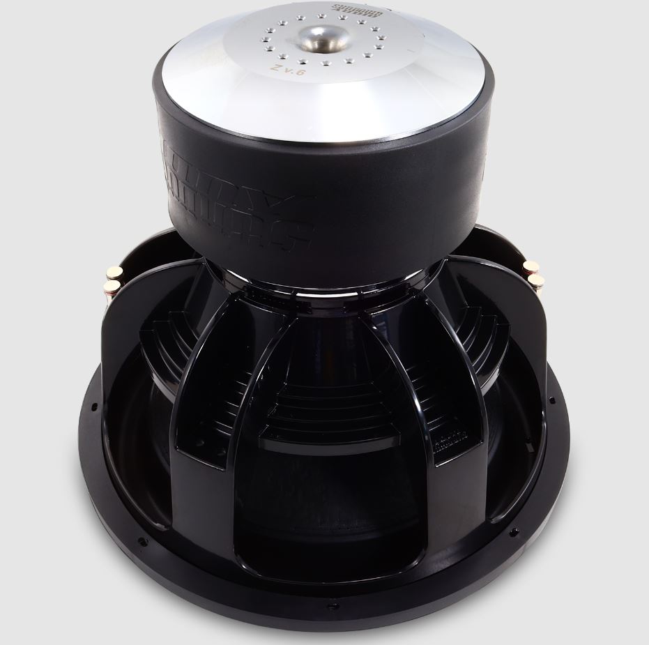 Le ZV6 est la deuxième étape de notre ligne "ULTRA HIGH EXCURSION", juste après la série X, et remplace la série ZV5 de renommée mondiale. Toute la gamme ZV utilise nos paniers brevetés, qui sont montés sur le moteur par un adaptateur, avec un diamètre de 23,4 cm chacun. Il en résulte une augmentation de 102mm avec, dans ce cas, une plaque polaire fortement élargie, ce qui permet une déviation de plus de 10cm peak to peak mécaniquement. Par rapport à l'entraînement X v3, la plaque polaire arrière est plus épaisse afin de pouvoir convertir une plus grande force magnétique. Le moteur entraîne une bobine de fil plat en aluminium à 4 couches d'un diamètre de 3", enroulée sur un support épais, cette combinaison offre un niveau de course incomparable.