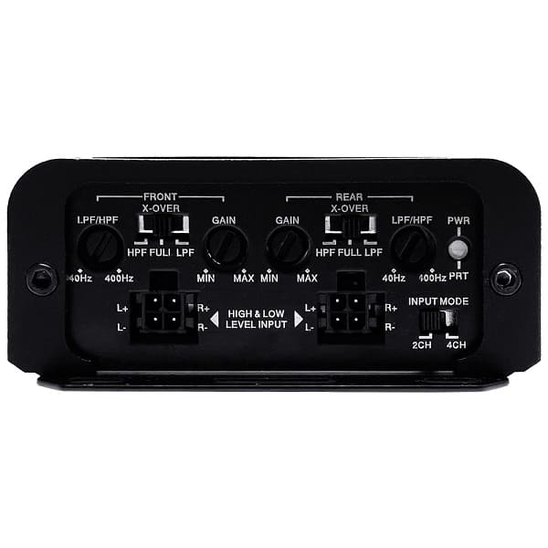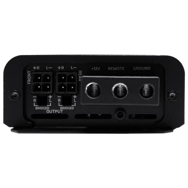 Cela correspond à 4 x 80 W RMS à 4 ohms, mais l'amplificateur est stable jusqu'à 2 ohms et fournit alors 4 x 125 W RMS. Les 4 canaux peuvent également être bridgés à 2 x 250 W RMS sous 4 ohms.
