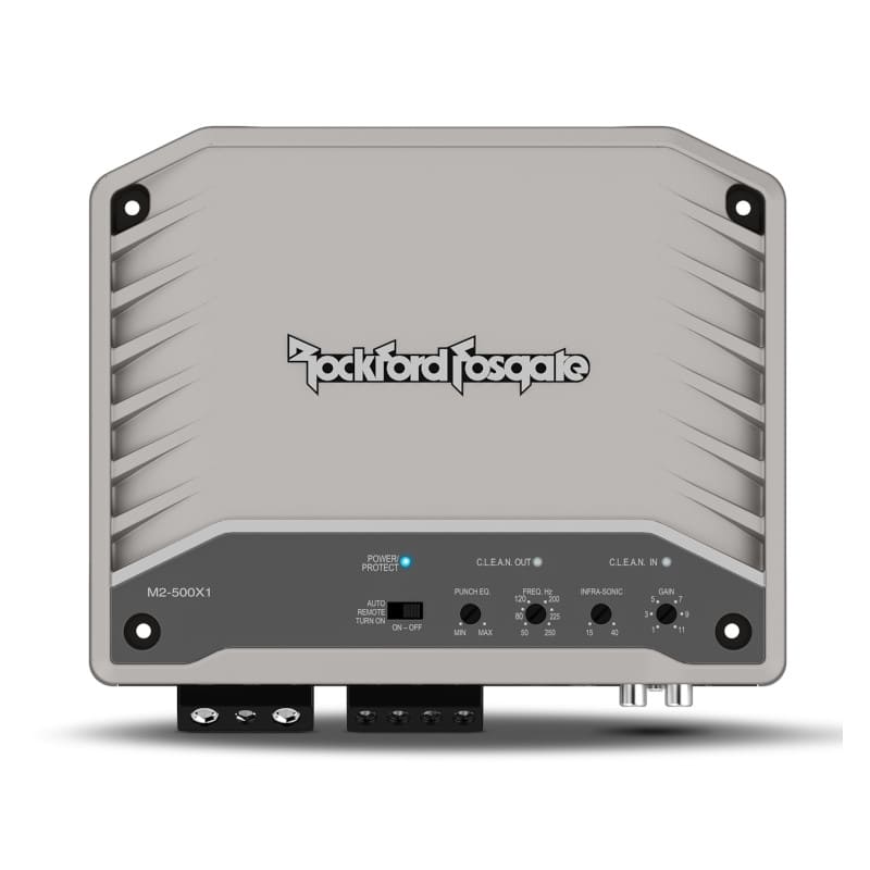 L'amplificateur M2-500X1 Element Ready™ est un modèle de classe D de 500 watts qui peut être utilisé avec 4 Ω ou 2 Ω mono. Cet amplificateur est extrêmement efficace grâce à sa technologie de classe D, qui réduit la charge du système électrique. L'amplificateur dispose également de circuits CLEAN qui vous permettent d'ajuster vos réglages de gain, d'une alimentation qui génère plus de puissance lorsque la tension augmente et d'un Punch EQ intégré qui corrige les défauts acoustiques tout en fournissant jusqu'à 3 fois plus de basses. Pour les subwoofers, un filtre infrasonique variable et un contrôle du niveau à distance vous permettent d'ajuster les basses au volume souhaité pour la musique.