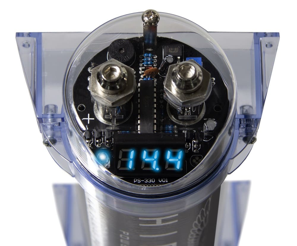 Le condensateur tampon HiFonics HFC2000 offre une alimentation électrique plus constante, une amélioration du son et une meilleure performance des basses pour l'amplificateur. Avec une capacité nominale de 2,0 farads, il absorbe les variations de tension désagréables vers le bas et stabilise l'ensemble du système sonore.