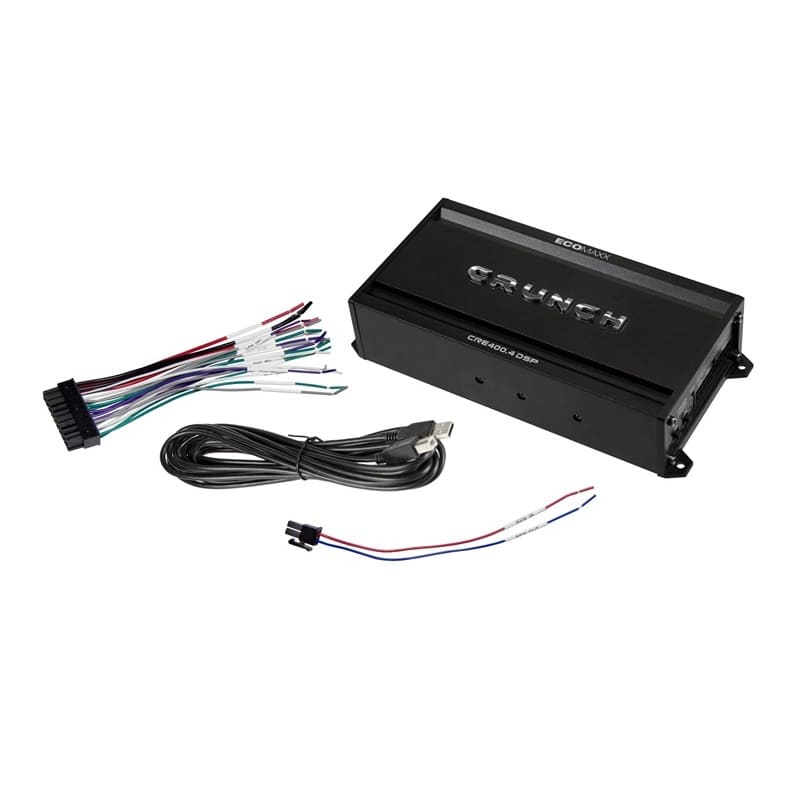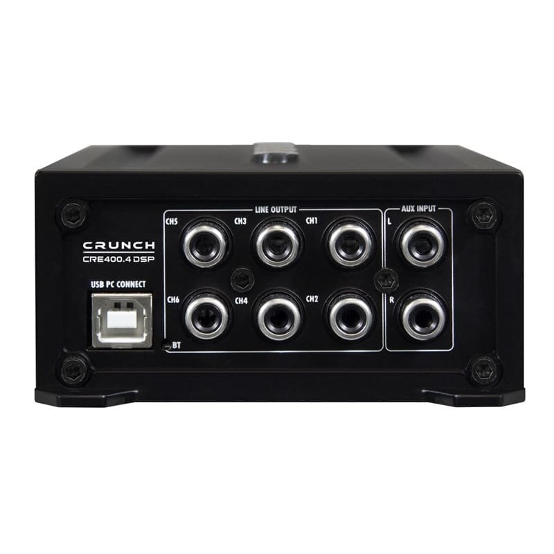 Con il sofisticato CRE400.4DSP, Crunch offre un eccezionale processore audio a 6 canali con preset preinstallati, che integra un amplificatore di potenza analogico a 4 canali in un alloggiamento estremamente compatto. Grazie al modulo Bluetooth integrato, l'apparecchio consente anche lo streaming musicale wireless, un vero e proprio fiore all'occhiello in questa categoria. In breve: il mini amplificatore DSP offre la possibilità di gestire sistemi anteriori e posteriori, mentre un'uscita RCA aggiuntiva consente di collegare un amplificatore supplementare per un subwoofer tramite il DSP - e tutto questo a un prezzo imbattibile!