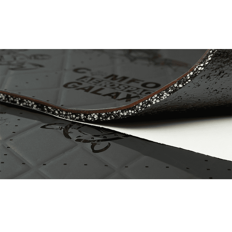 foglio di alluminio da 0,1 mm + membrana pesante di 2 mm di spessore + mastice da 5 mm con granuli espansi + adesivo sensibile alla pressione