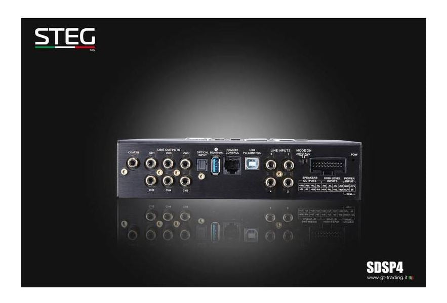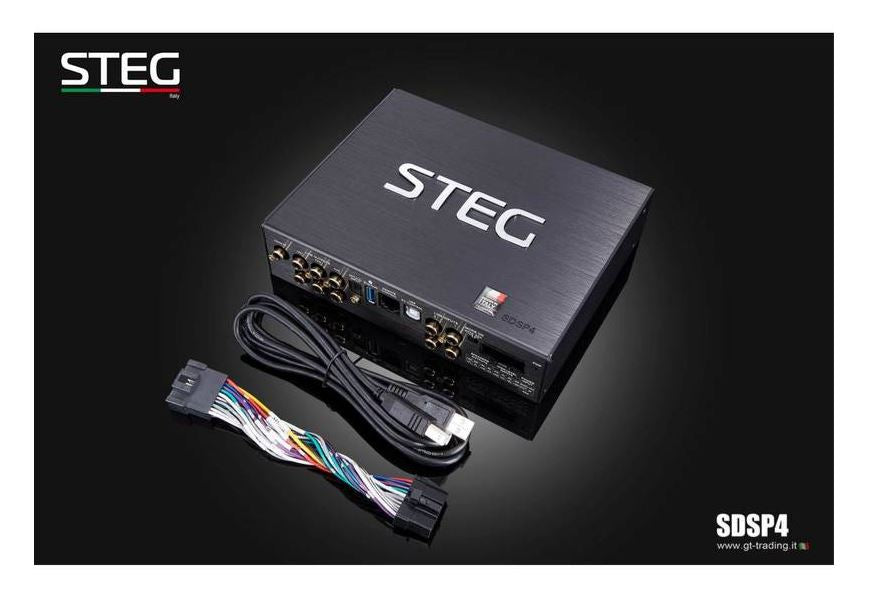 Lo STEG SDSP-4 è stato sviluppato da GTTrading per ottenere la massima qualità sonora nel veicolo. Un potente processore consente di gestire più diffusori nell'auto attraverso un dispositivo compatto.