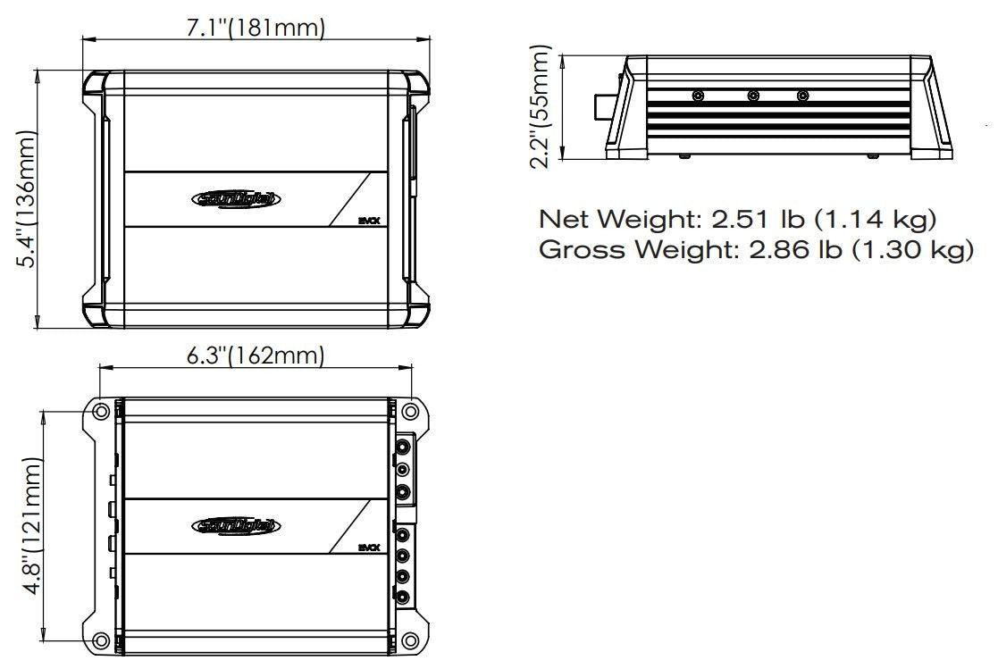 Ponte @ 14,4V @ 4Ω: 1 x 883 WRMS