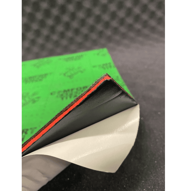 Es besteht aus 3 Schichten: einer Membran (4 mm) mit akustischem Butyl mit hoher Dichte, schallabsorbierendem Material (4 mm) und einem neuen Dichtungskleber, der von -50 bis +150 ° C funktioniert.