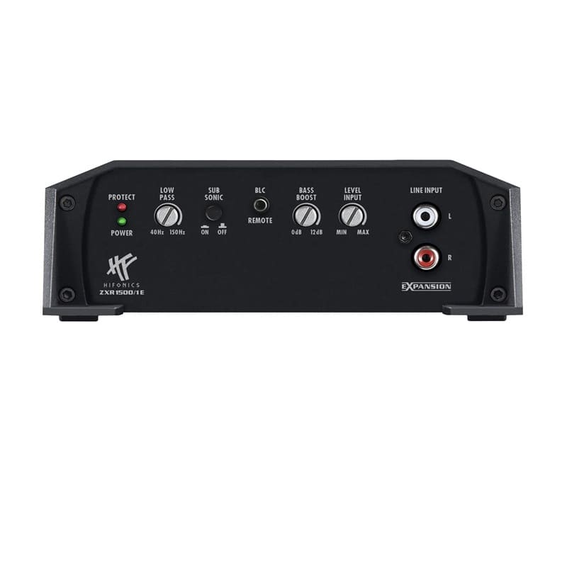 HiFonics bietet nun drei solcher ZXR/E Modelle mit Basspegel-Fernbedienungen und Leistungen von 750, 1000 und 1500 Watt RMS an, die auch große Subwoofer ordentlich antreiben können. Mit neuesten Infineon® Chipsätzen bestückt, erreichen sie extrem hohe Wirkungsgrade bis zu 92%. Sie verbrauchen somit weniger Strom und schonen das Bordnetz. Ideal ist die Kombination eines Monoblocks mit dem 8-Kanal DSP-Verstärker ZXR800/8DSP aus derselben Designlinie, der über einen 10-Kanal DSP mit Bluetooth-Steuerung verfügt. Über RCA/Cinch verbunden, liefert der ZXR/E-Monoblock das entsprechende Bassfundament dazu.