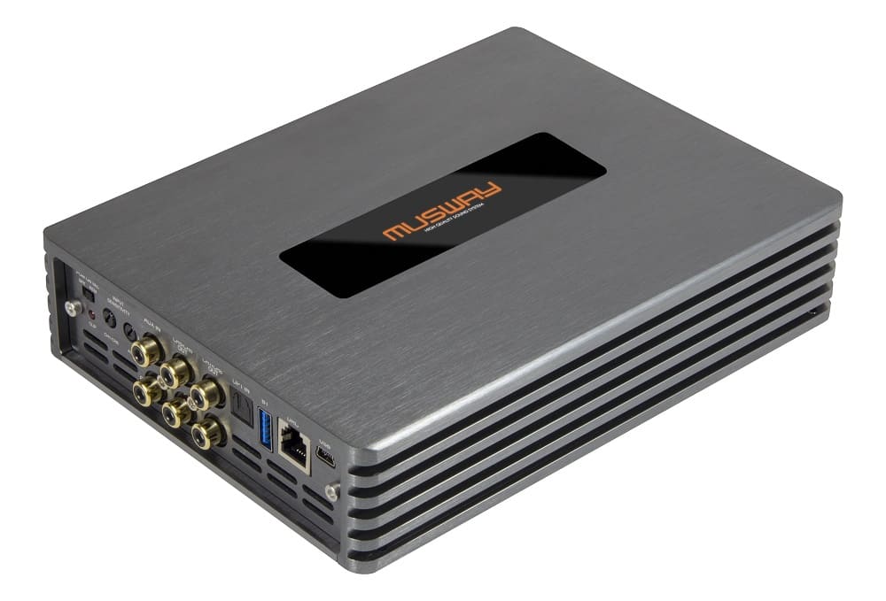 Den neuen M4v3+ DSP Verstärker kann man als den kleinen Bruder des M6 Modells ansehen. Der einzige Unterschied besteht darin, dass der M4+ nur vier verstärkte Lautsprecher besitzt, aber dafür pro Kanal mehr Leistung als der größere M6 bietet. Beide Modelle teilen sich auch die sehr kompakten Gehäuseabmessungen, ermöglicht durch die raffiniert konstruierte 4-fach kaschierten Platine. Die neuartig konzipierte Class D Technologie ist besonders gegen EMV-Störungen gefeit, was heutzutage in modernen und mit elektronischen Bauteilen vollgestopften Fahrzeugen nahezu unabdinglich ist, um störungsfrei Musik beim Fahren genießen zu können. Mit vier brückbaren Power-Ausgängen mit jeweils 135 Watt RMS pro Kanal (an 2 Ohm) bietet der M4+ eine überzeugende Ausgangsleistung mit insgesamt 540 Watt RMS.