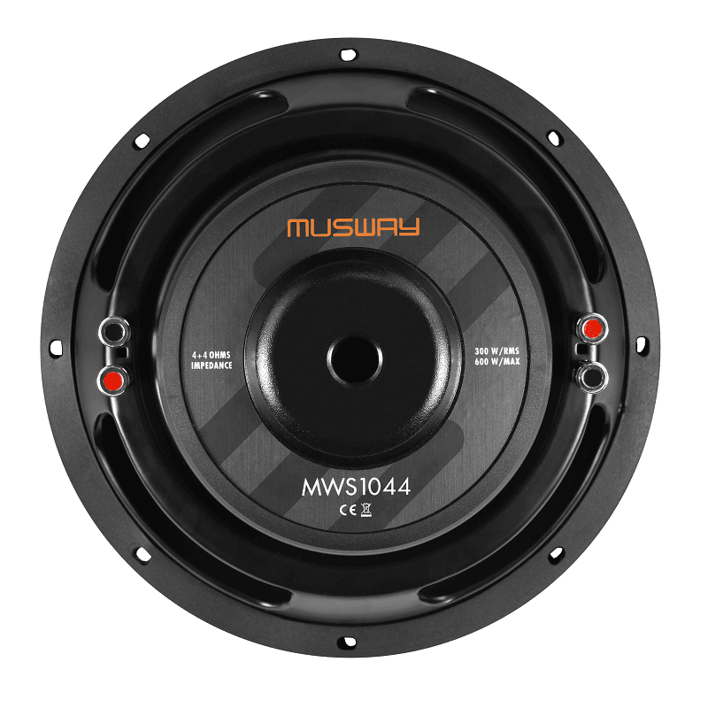 Ein besonders flacher Subwoofer sollte natürlich auch gut klingen und muss robust sein. Daher setzt MUSWAY in den MWS-Modellen spezielle und sehr harte Membranen aus den Verbundstoffen Glasfaser und Karbon ein. Auch an den Antrieben wurde nicht gespart: Die Woofer haben 40 bzw. 45 Unzen schwere Magnete und werden von 50 mm großen 4+4 Ohm Doppelschwingspulen angetrieben, die überdies sehr lang gewickelt sind. Mit Xmax-Werten von +/-15 mm sorgen beide Tieftöner für ordentlich Hub. Mit 250 bzw. 300 Watt RMS sind sie zudem sehr hoch belastbar, so dass auch in dieser Disziplin keinerlei Abstriche gemacht werden müssen.